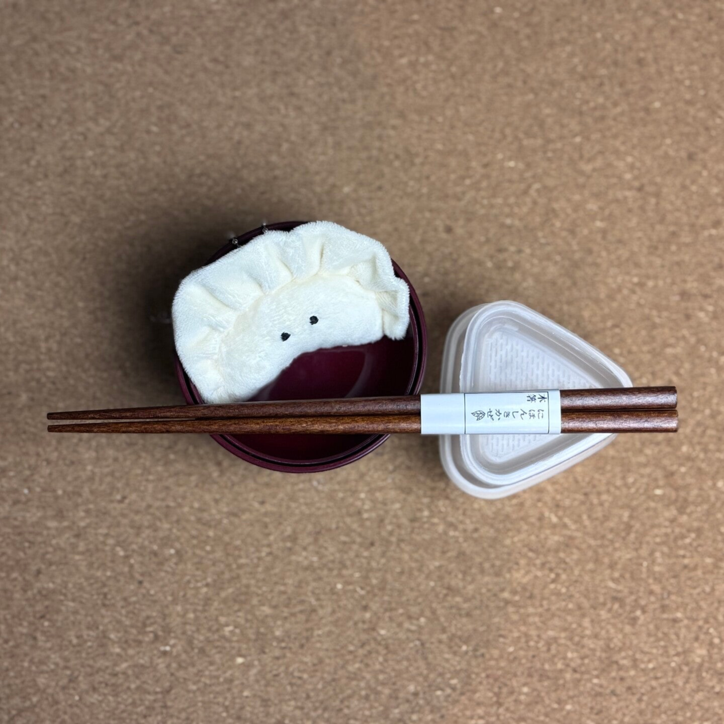 Elegant Japanese soup bowl 🍜🇯🇵 , Onigiri 🍙 mold, Wooden chopsticks 🥢, and a cute soft plush dumpling 🥟. An ideal set for those wishing to introduce a touch of Japanese cuisine into their home or to present as a thoughtful gift.