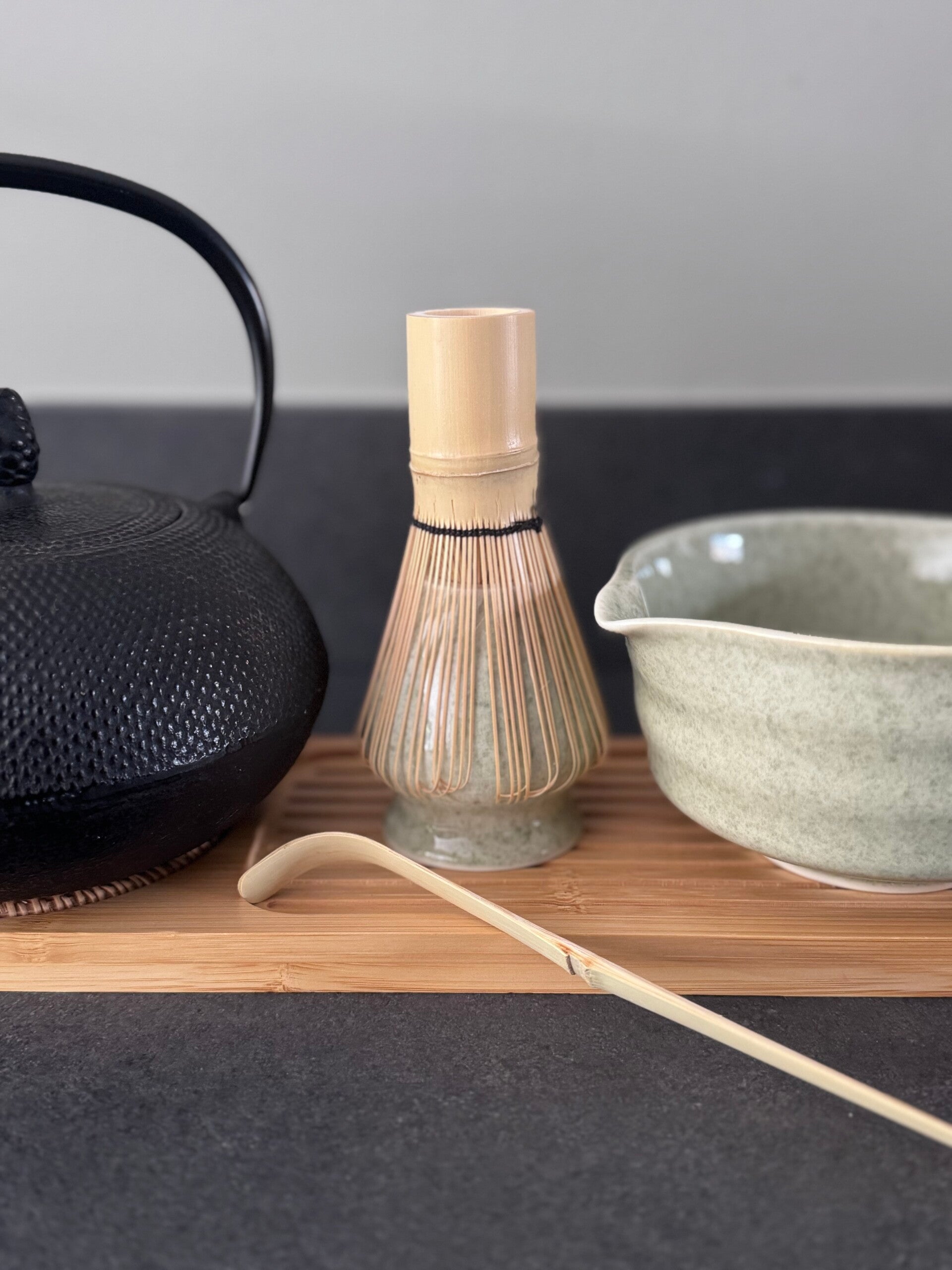 Real bamboo Matcha Wisk, with Bamboo measuring spoon.