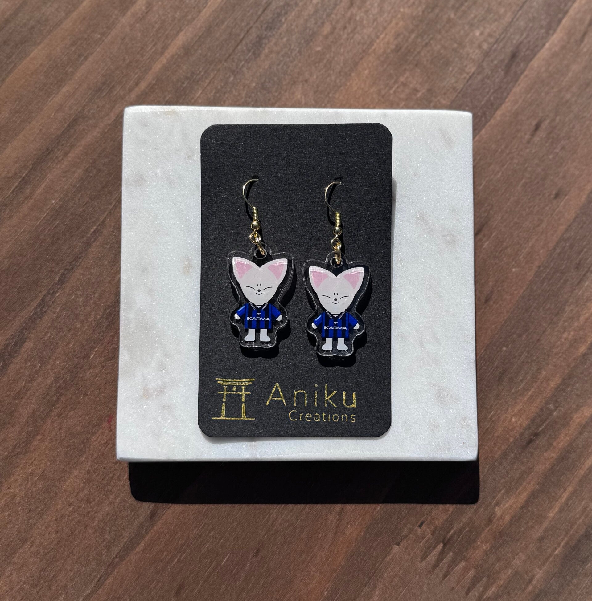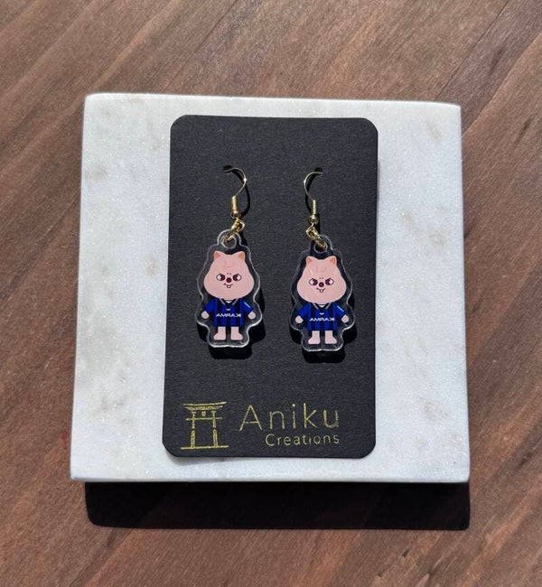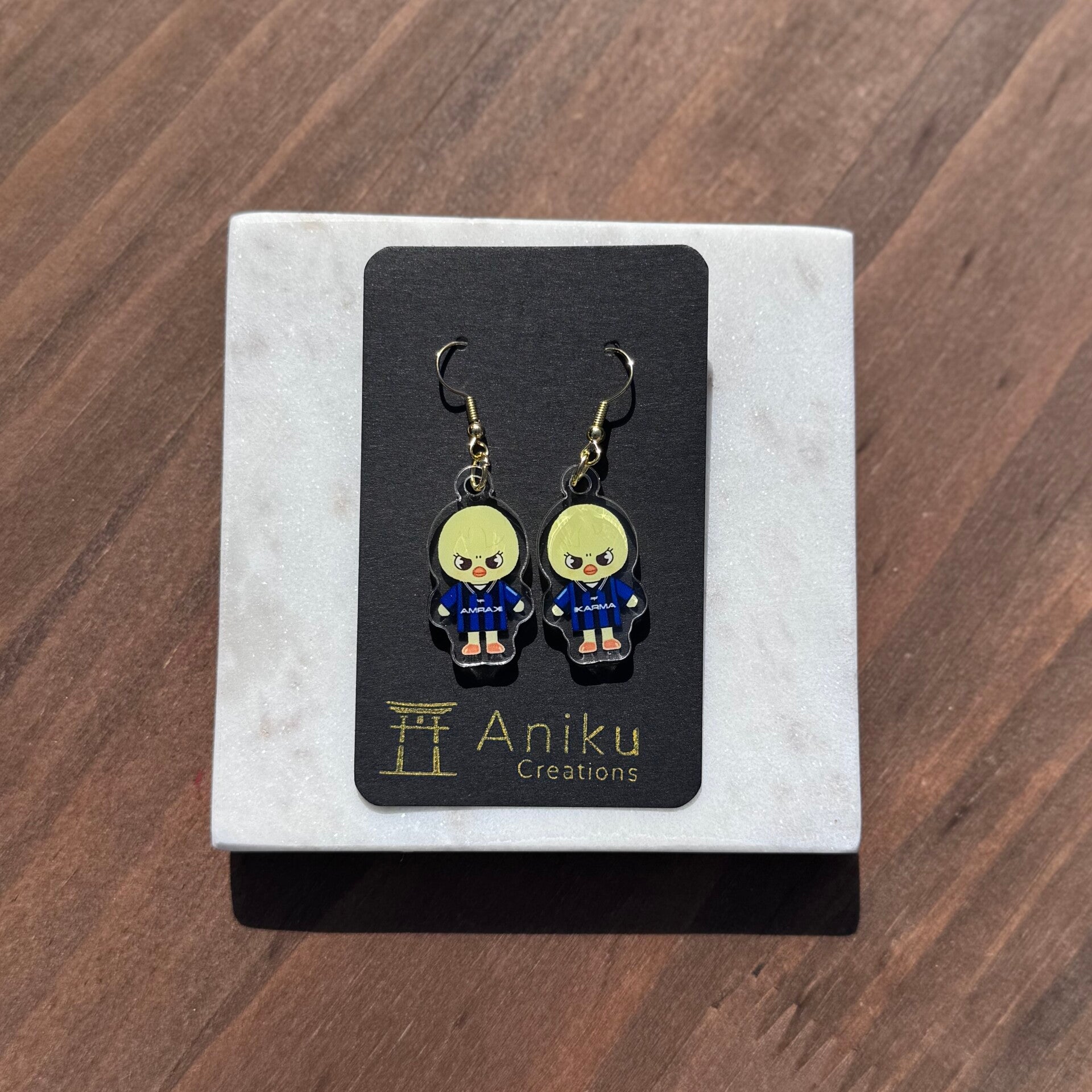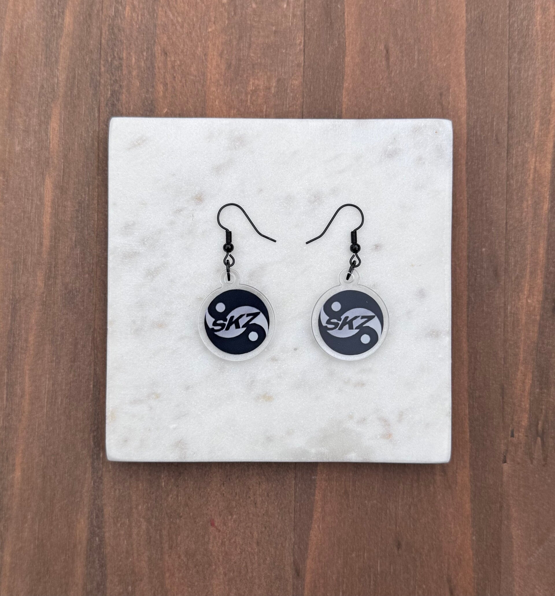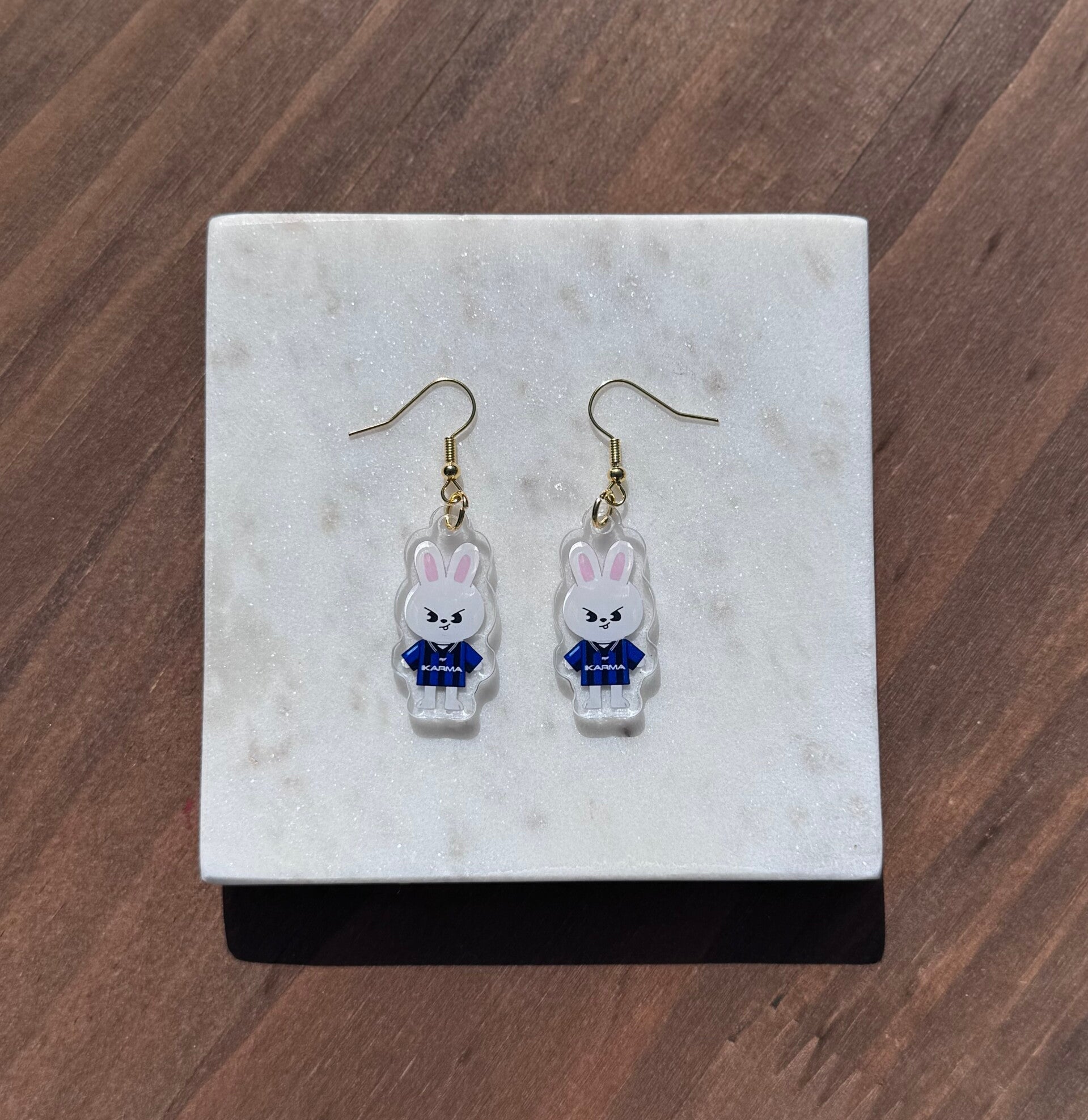 * Earrings, with SKZOO wearing the KARMA tshirt. The earpins are made of goldcoloured steel. Pendant is ca. 2,5 cm.
