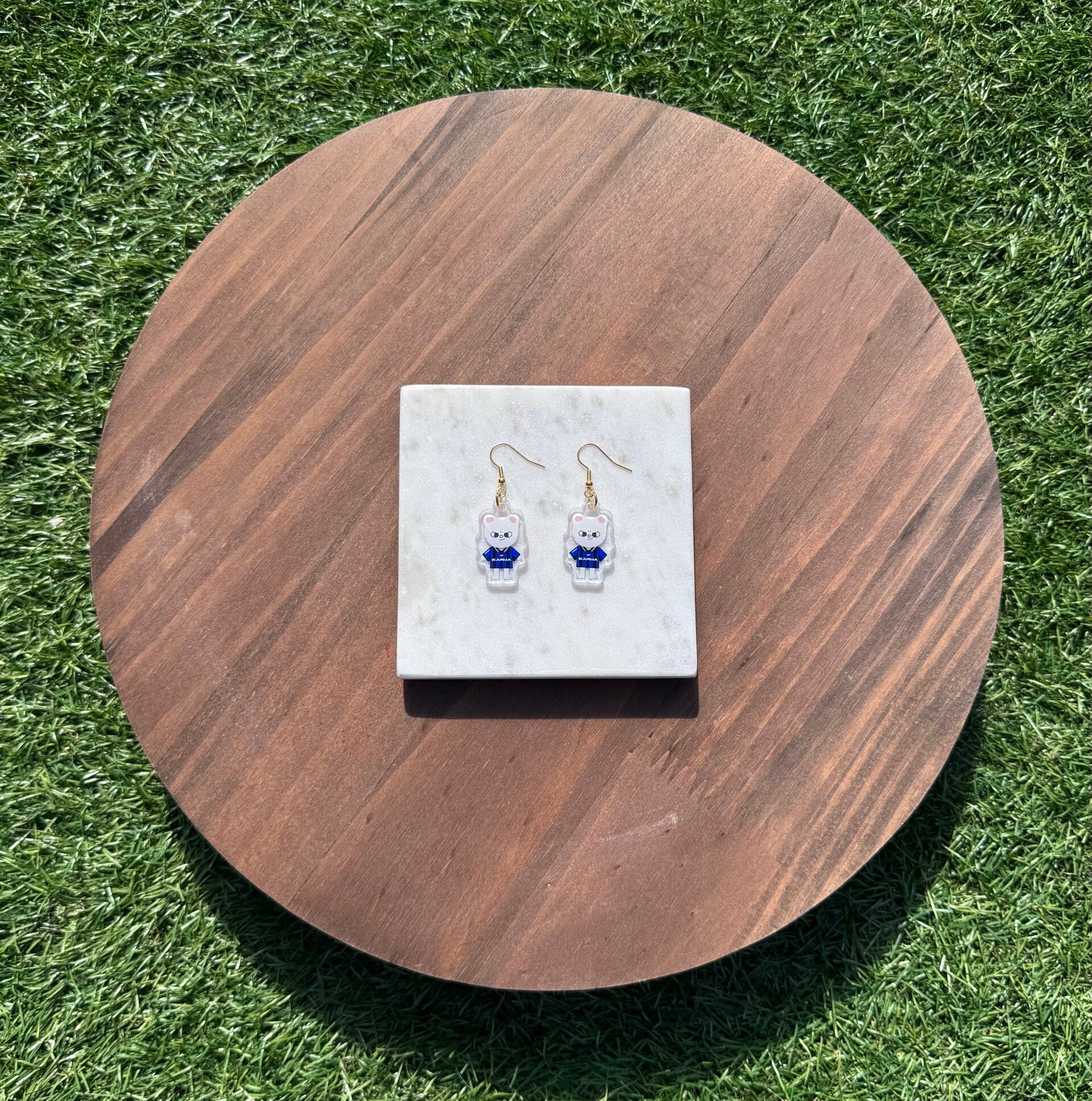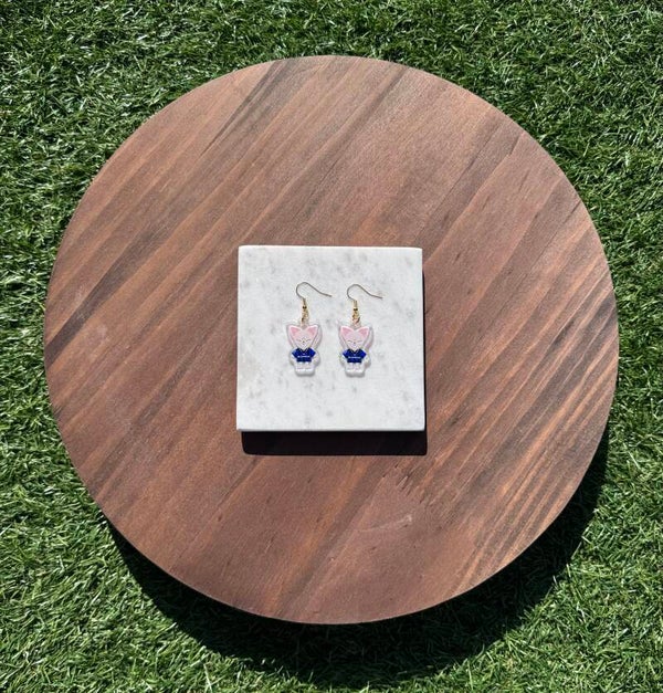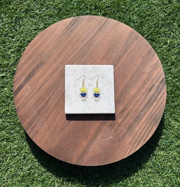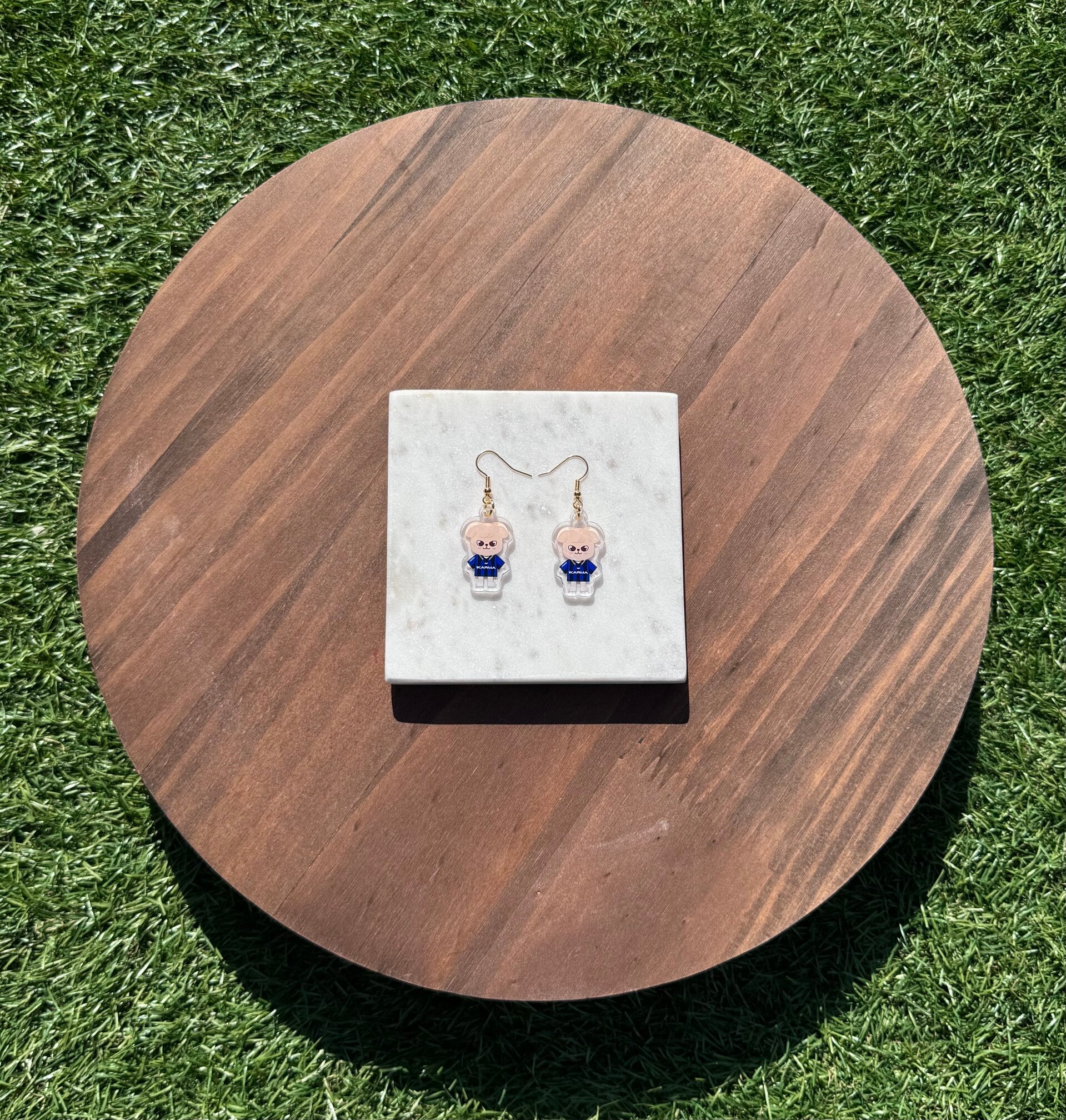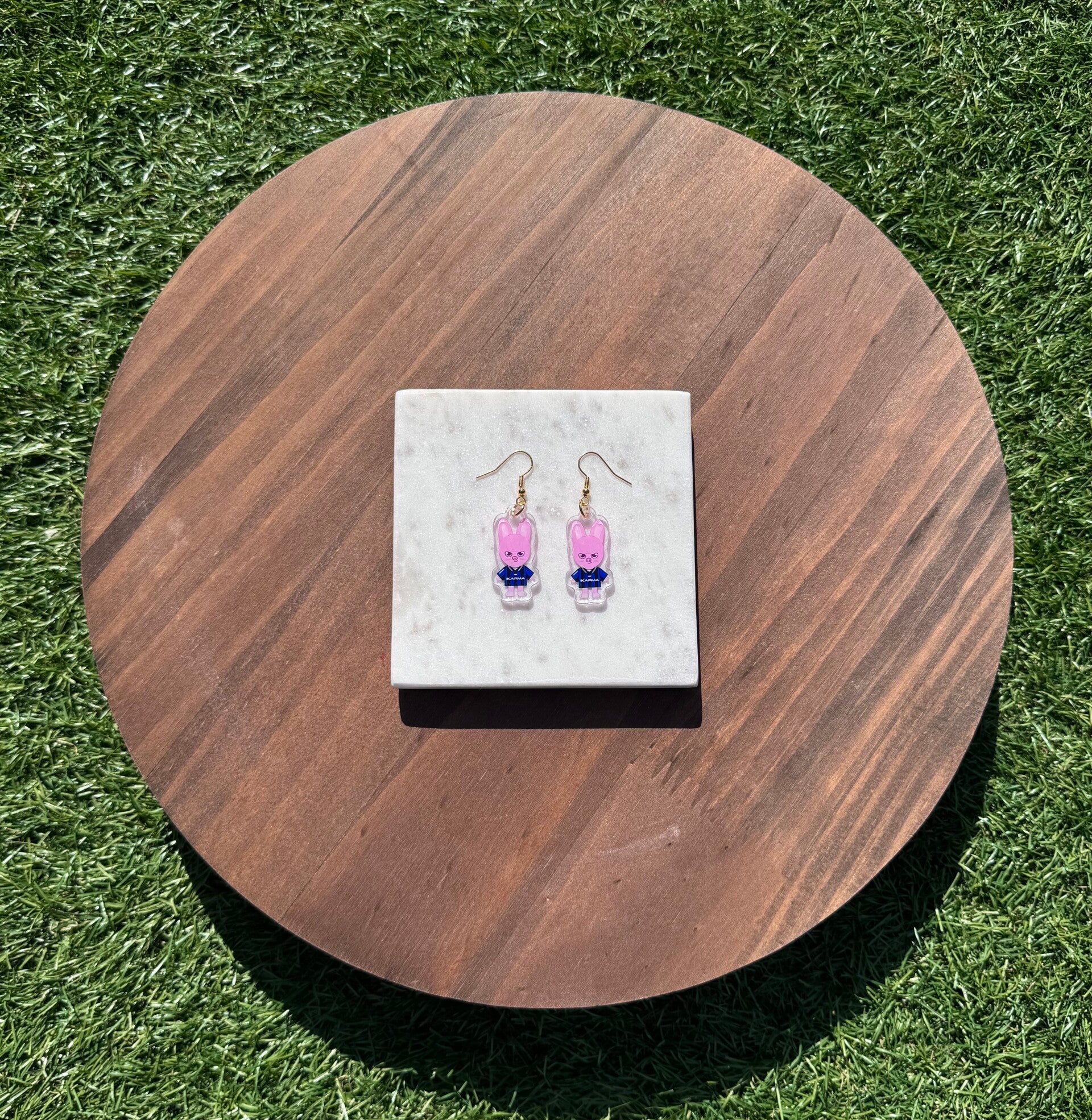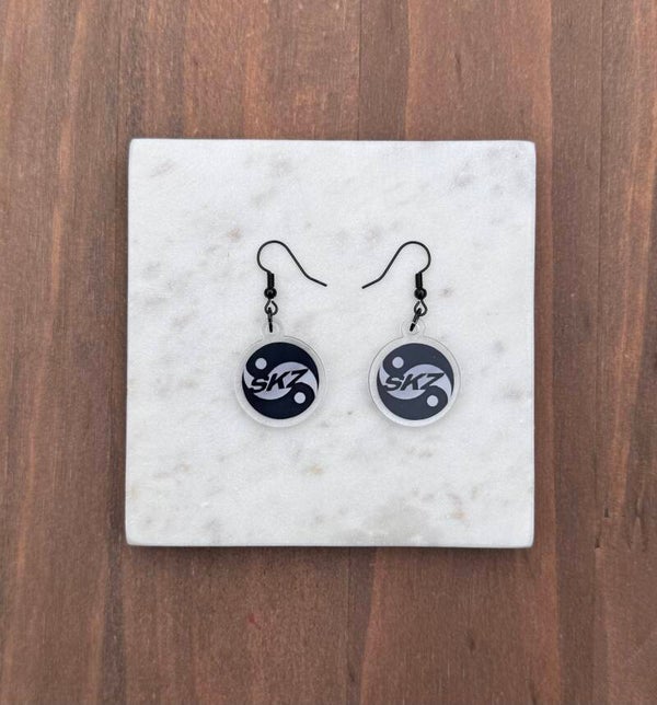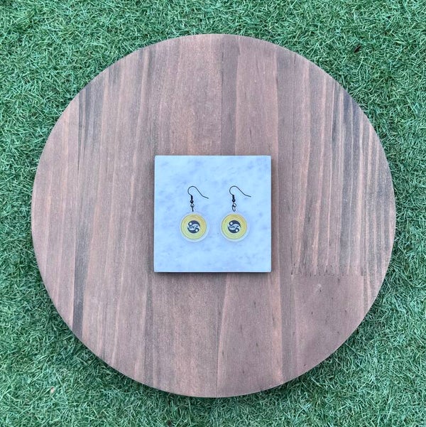 * Earrings, with SKZOO wearing the KARMA tshirt. The earpins are made of goldcoloured steel. Pendant is ca. 2,5 cm.