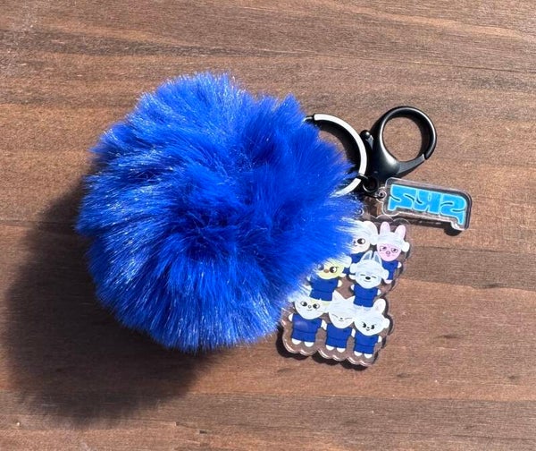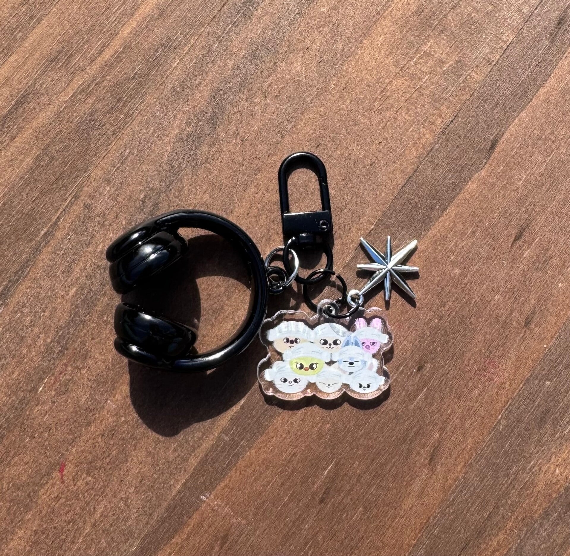 * Keychains (3 styles: Blue Fluff with black Headphones and SKZ pendant / Blue Fluff with SKZOO / Headphones with SKZOO and lightstick emblem)